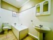 1 guest bathroom with bath, toilet and basin.